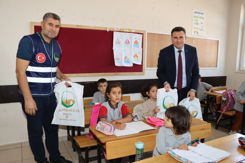 Okulumuz 1.sınıf Öğrencilerine çanta ve kırtasiye yardımında bulunan İstanbul Adıyamanlılar Vakfı'na ve dağıtımda mutluluğumuza ortak olan İlçe Milli Eğitim Müdürümüz Sayın Lütfi BAŞLİ,Vakıf Gönüllüsü Sayın Hamza TAŞAN,ile Sayın Cevher BOZKURT'a teşekürlerimizi sunuyoruz..Veren el alan elden hayırlıdır..